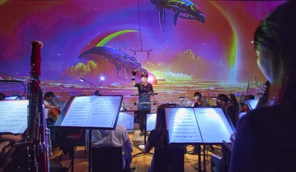 去年於浸大周年音樂會演出的人機歌舞表演是研究項目的首個成果,由潘明倫同時指揮AI合唱團與真人交響樂團,演奏新編的《東方之珠》,並配以舞台大熒幕上由AI生成的芭蕾舞與視覺藝術影像。