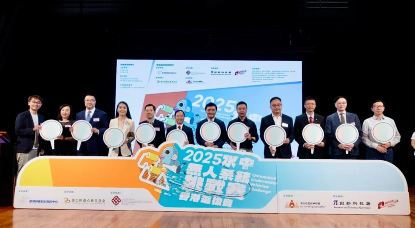 在莊重而熱烈的啟動儀式上,創新科技及工業局數字政策專員黃志光JP、中聯辦九龍工作部副部長李文彬先生、油尖旺民政事務專員余健強JP、全國政協委員、油尖旺愛心慈善基金主席車弘健先生、香港科普科幻教育中心發起人、北京元宇科幻未來技術研究院副院長陳柳岐女士、油尖旺社團聯會會長楊子熙BBS,MH、香港特區立法會議員、香港高才通人才服務協會創會會長尚海龍議員、油尖旺愛心慈善基金創會主席潘陳愛菁SBS. JP、油尖旺愛心慈善基金永遠榮譽主席陳麗芳博士,JP、香港科普科幻教育中心董事李家軒先生、香港理工大學深空探測中心副主任吳波教授、联合电子出版有限公司总经理周晟、香港海事博物馆董事冯锦荣博士共同進行了象徵「深藍探索」的啟動儀式,標誌著2025年「水中無人系統挑戰賽」香港選拔賽正式開始。
