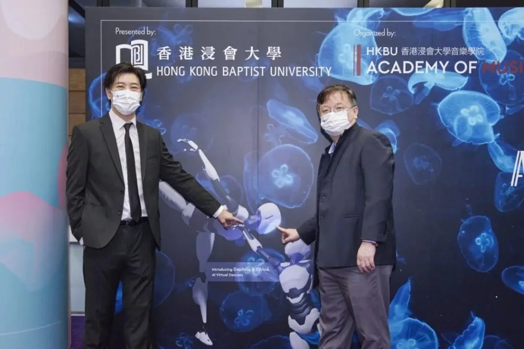 負責統籌香港浸會大學(浸大)「香港人機共生藝術創造平台技術建設」項目的郭毅可與潘明倫,去年底帶領團隊創作了全球首場人機共創共演的歌舞表演,結合AI合唱團、AI舞蹈、AI媒體藝術與真人交響樂團,於浸大周年音樂會上演出。