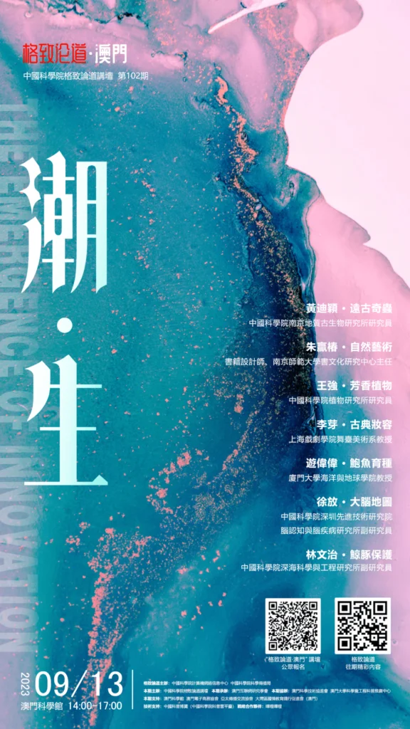 為促進內地與港澳地區的科學文化交流和融合,加強澳門地區對內地科學文化發展的認識和了解,提升港澳民眾尤其是青少年學生對國家的認同感和歸屬感,“格致論道”首次落地澳門。本次“格致論道·澳門”為“格致論道”的第102期講壇,由中國科學院計算機網絡信息中心、中國科學院科學傳播局主辦,澳門互聯網研究學會承辦,以『潮·生』為主題,來自遠古生命、文化藝術、博物科考、腦科學等各領域的專家將共聚澳門,分享新發現、新思想和新觀點,讓更多公眾和青少年感受科學文化的魅力。