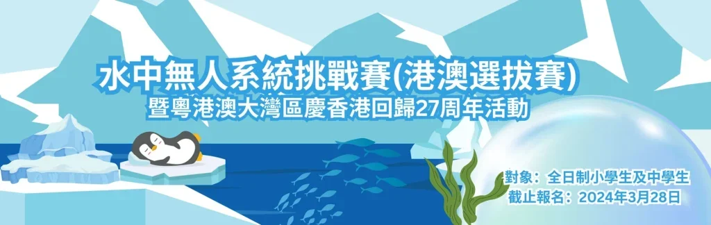 「水中無人系統挑戰賽」是由國家科技傳播中心指導,中國電子學會、中國海洋學會主辦的科技想像力創新創作一體的活動。為推動科普在港澳地區的推廣宣傳,並促進港澳地區與內地的交流與合作,本中心受水中無人系統挑戰賽全國賽組委會委託,在港澳地區舉辦「水中無人系統挑戰賽(港澳選拔賽)」(下稱港澳選拔賽)。是次港澳選拔賽已被納入中華人民共和國教育部指定白名單比賽,優秀得獎者將獲推薦代表「港澳代表隊」參加2024年8月舉行的全國總決賽。 同場舉辦「粵港澳大灣區青少年慶回歸交流賽」,邀請粵港澳大灣區城市派出隊伍來港進行科技交流活動,共同慶祝香港回歸祖國27周年。